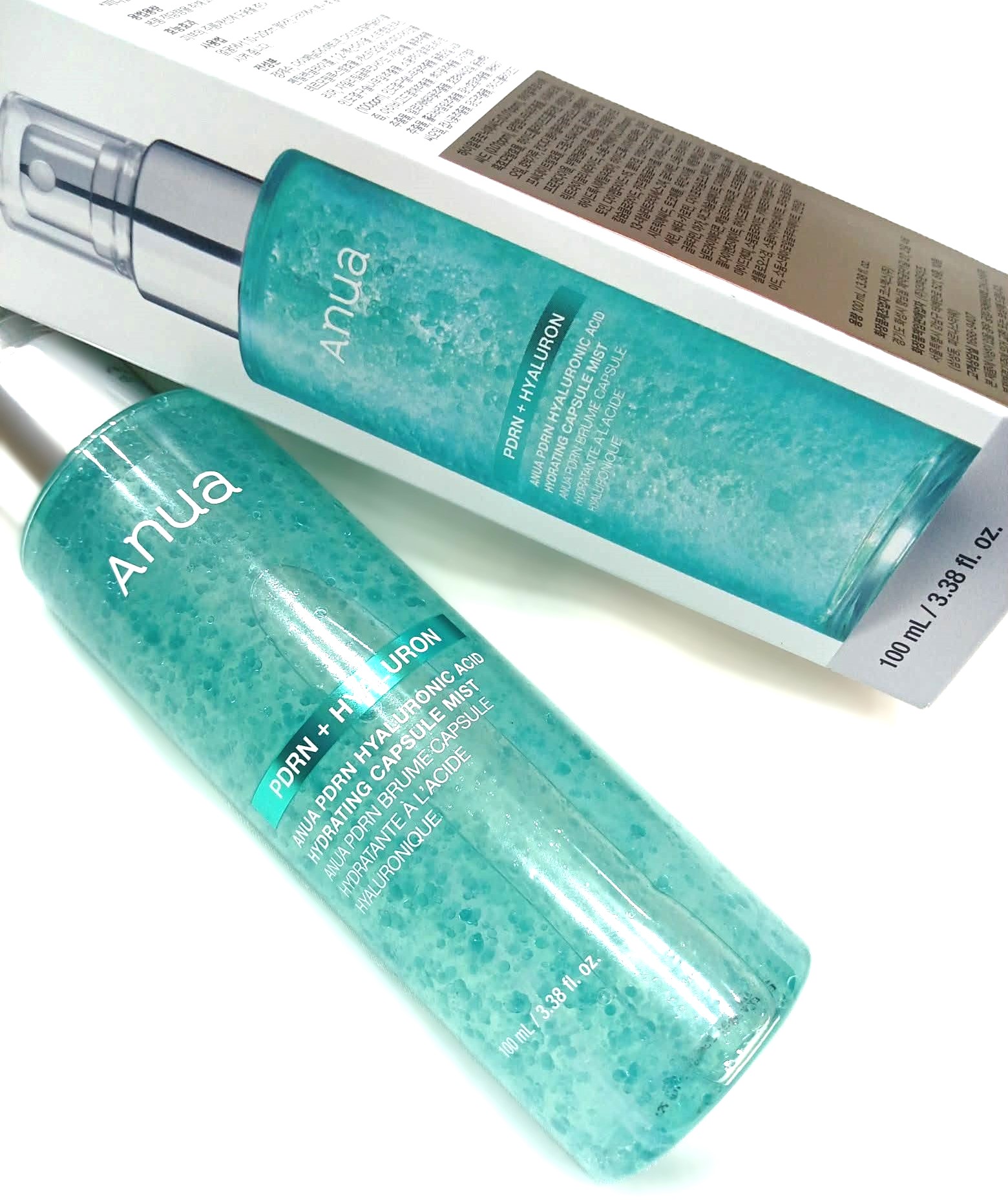 Anua PDRN Hyaluronic Acid Hydrating Capsule Mist is a lightweight, spray-on moisturizer featuring 2,000ppm PDRN (salmon DNA) and hyaluronic acid to deliver instant hydration, improve skin elasticity, and promote a radiant glow. It features fine, absorbing, oil-essence capsules that are suitable for all skin types and can be used over makeup
