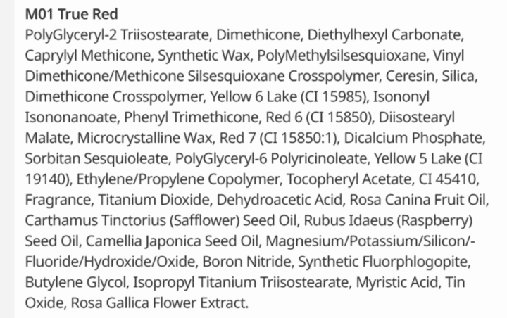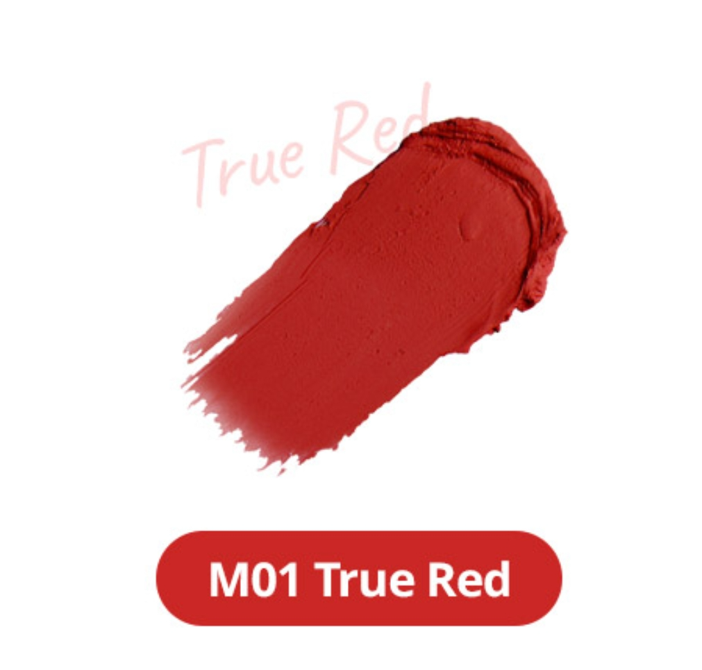 Shade: M01 True Red — a vibrant, classic red suitable for a variety of skin tones.