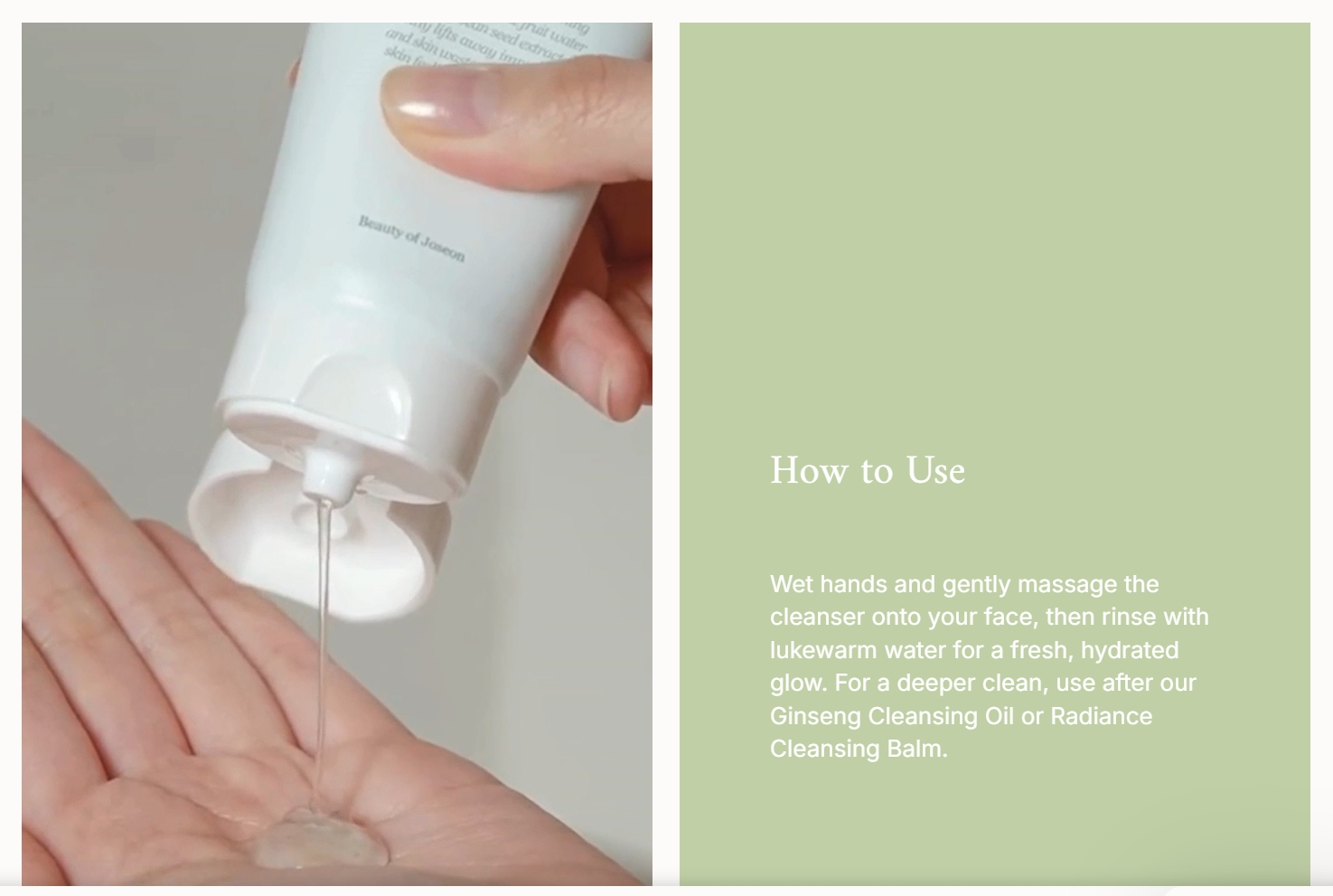 Apply a proper amount to wet hands and create a lather. Gently massage onto the face, then rinse thoroughly with lukewarm water. It can be used as a daily cleanser, both morning and night.