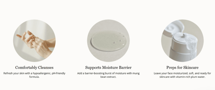 2. Natural Exfoliation & Brightening: Contains green plum water (natural AHAs) and mung bean extract to remove dead skin cells, clear pores, and brighten the complexion.