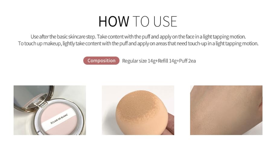 Begin application from the center of your face (cheeks, nose, forehead) and work your way outwards. Use a gentle, light tapping or pressing motion to blend the foundation into your skin. Avoid dragging or swiping the puff.
