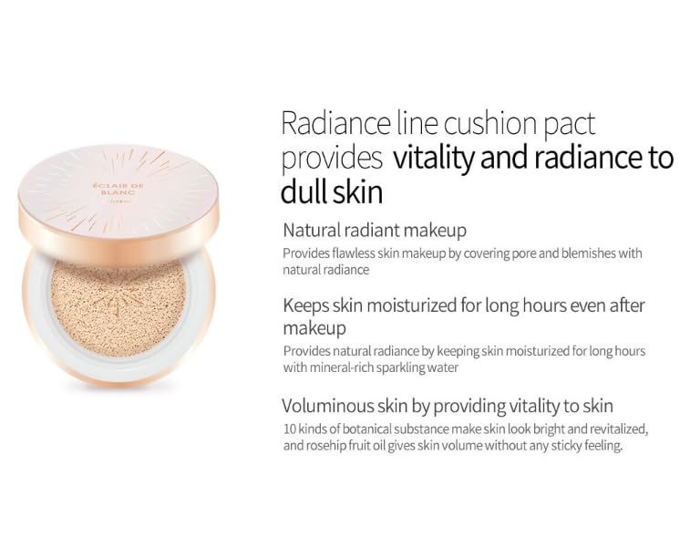 The Deoproce Eclair de Blanc 21 line of products (such as the emulsion, cream, or cushion foundation) offers main benefits centered on skin brightening, deep hydration, and anti-aging effects. which help to even out a dull complexion and give the skin a radiant, luminous finish.