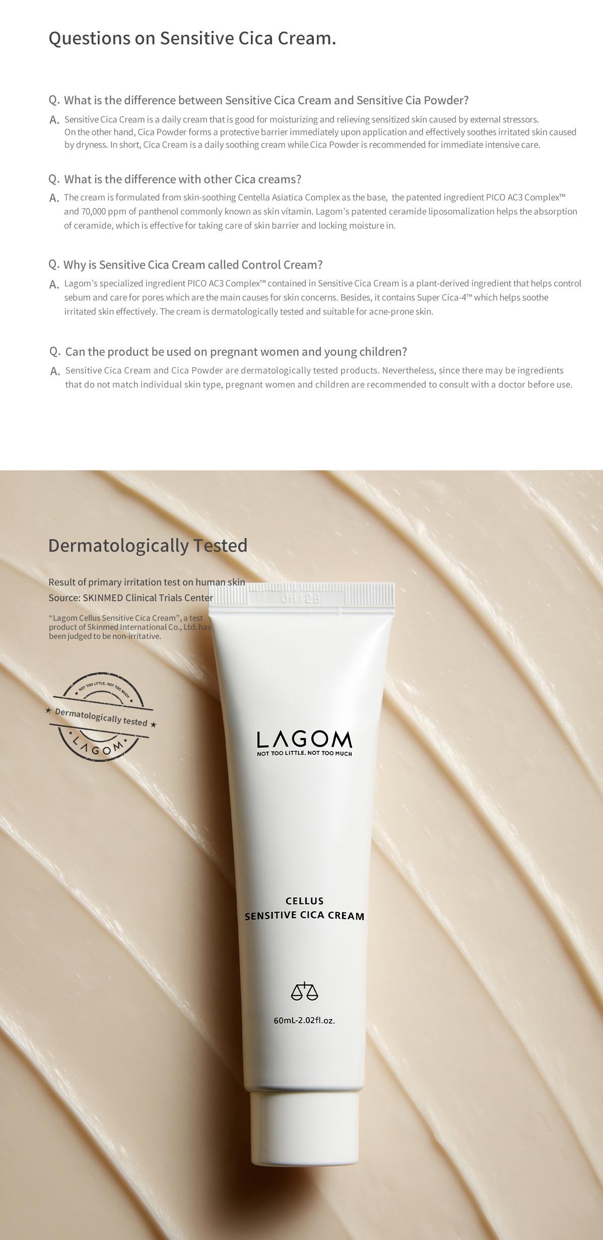The LAGOM Cellus Sensitive Cica Cream is a soothing, hydrating cream designed for sensitive, irritated, and acne-prone skin, with the primary benefits of calming inflammation and strengthening the skin barrier. Side effects are generally minimal as it is formulated to be gentle, but as with any skincare product, individual adverse reactions can occur