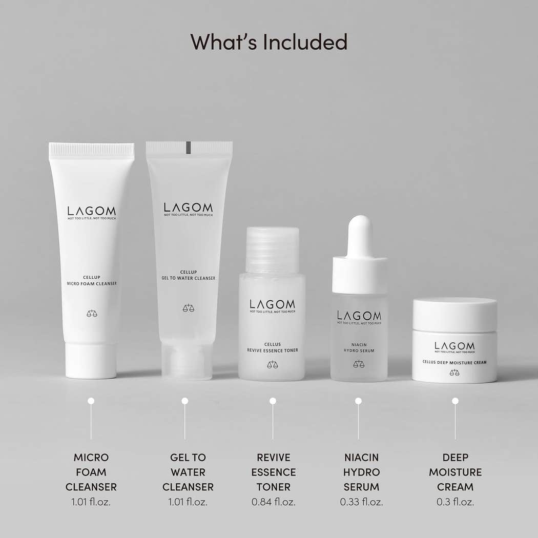 Lagom, this travel kit includes all the most popular of Lagom’s line up of skin care basics. Bundled with a convenient carry case that you can throw into your handbag, backpack or carry on, this bundle consists of a day cleanser, the Cellup Gel to Water Cleanser, a night cleanser, Cellup Micro Foam Cleanser, a toner, the Cellus Mist Toner and a moisturiser, Cellus Deep Moisture Cream. A complete and convenient solution to all your travel skin care needs.
