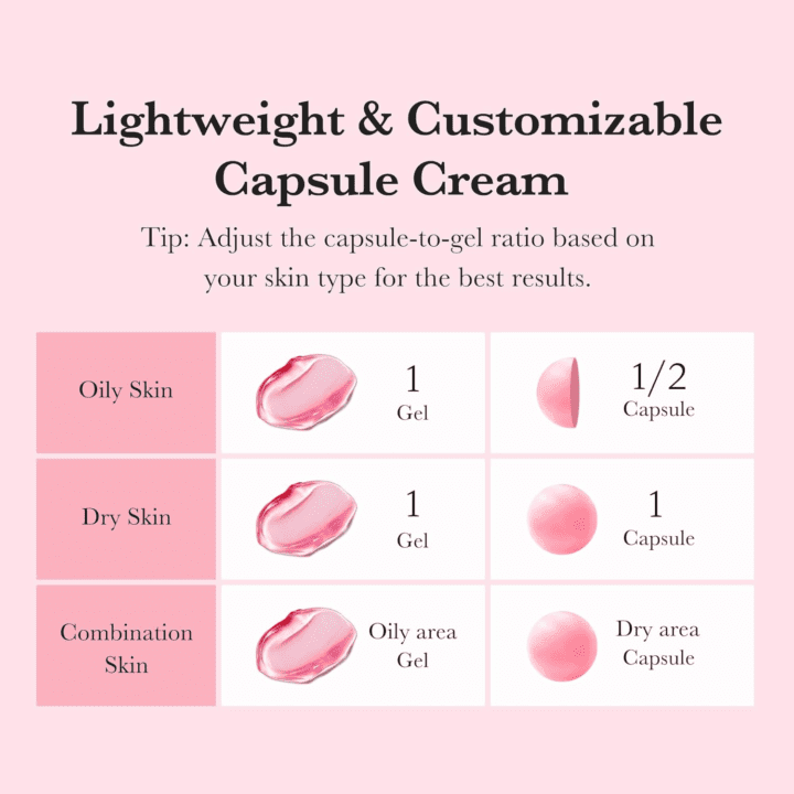 - Use more gel for a lighter feel, or more capsules for increased hydration and elasticity.